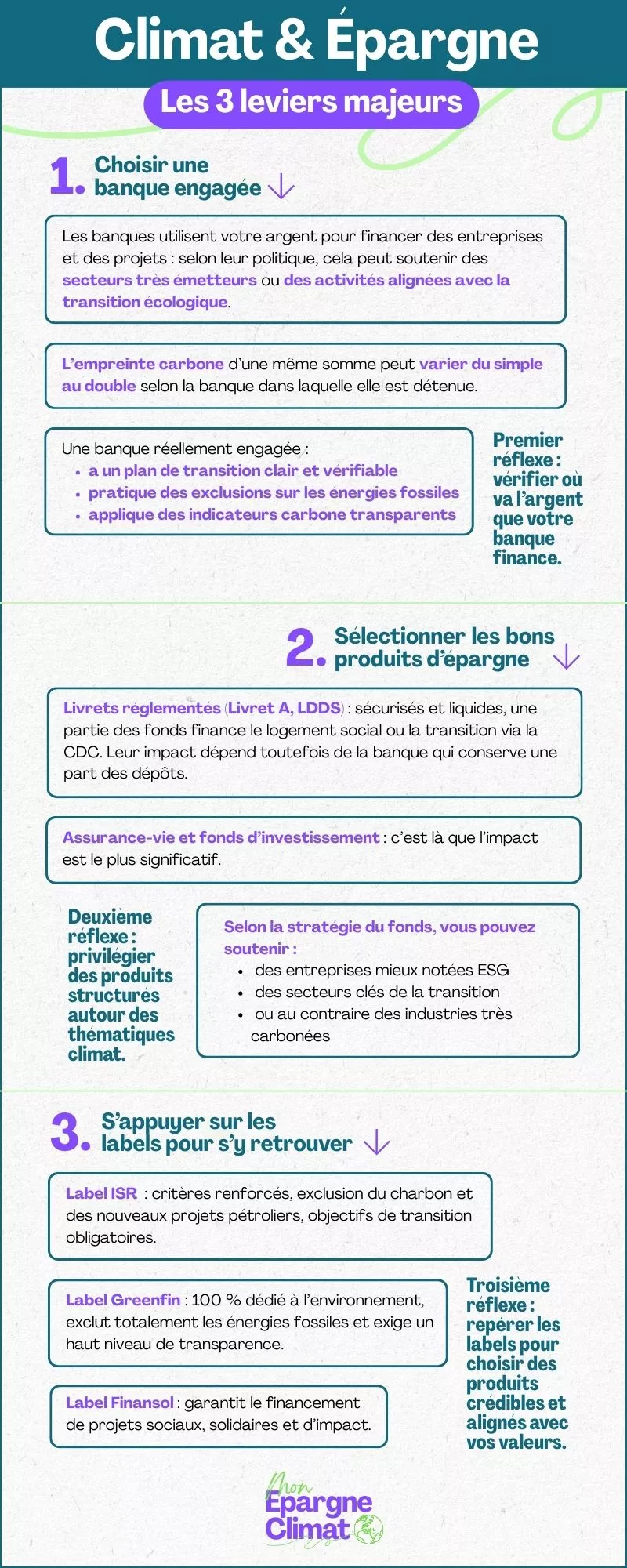 Les Français souhaitant donner du sens à leur épargne peuvent choisir des produits intégrant les enjeux climatiques. Mais si certains produits sont spécifiquement dédiés à ces enjeux, d’autres ne le sont qu’à la marge ou sur demande. Panorama des principales différences.
